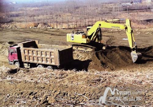 徂徠山脈,高家莊,百余畝丘陵農田在挖掘機等工具的摧殘下,變的滿是石料,坑洼難行,“光這邊就有100多畝地,都在采石、選鐵礦等過程中被破壞了,土都被車運走賣掉了?!备呒仪f一村民告訴記者說。記者現(xiàn)場探訪發(fā)現(xiàn),目前仍有挖掘機在現(xiàn)場作業(yè),將農田里的土挖掉運走。