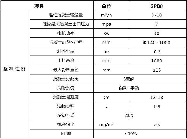 SPB8型濕式混凝土噴射機(金屬礦山專用)主要技術(shù)參數(shù):